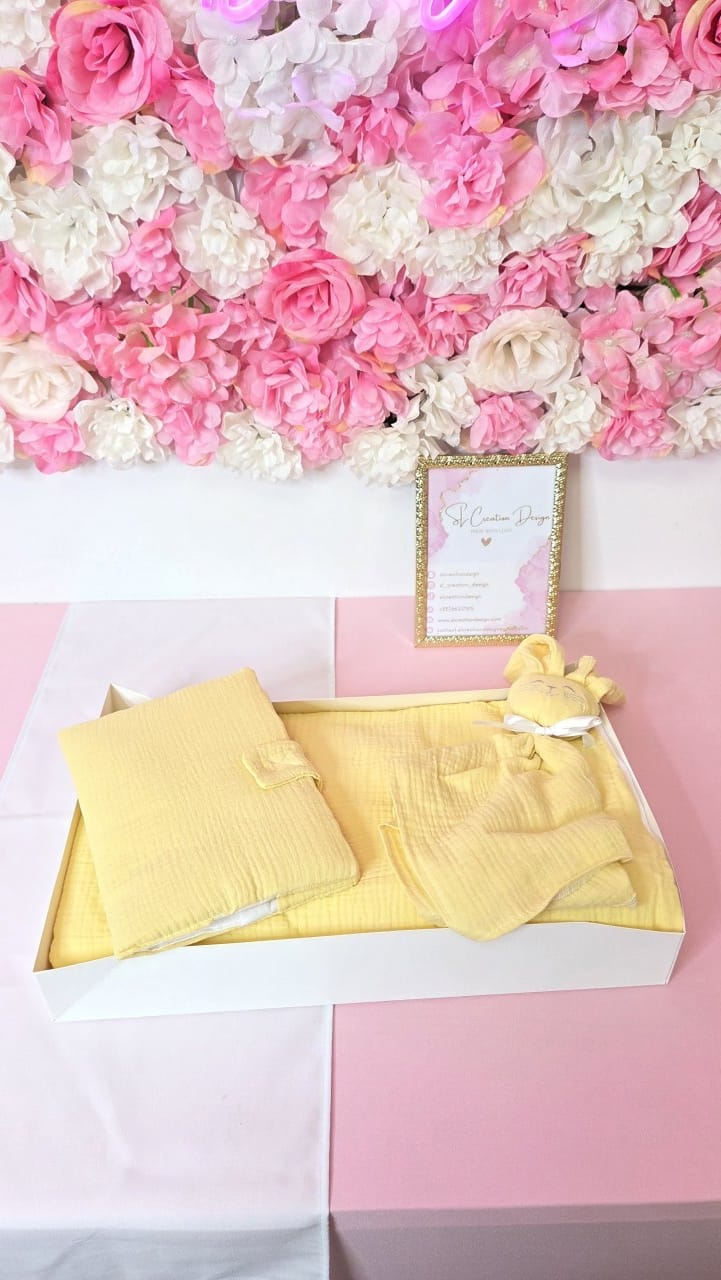 Le Coffret Premier Câlin est le cadeau idéal pour une naissance, baby shower, baptême ou tout événement spécial, alliant douceur, qualité et originalité.